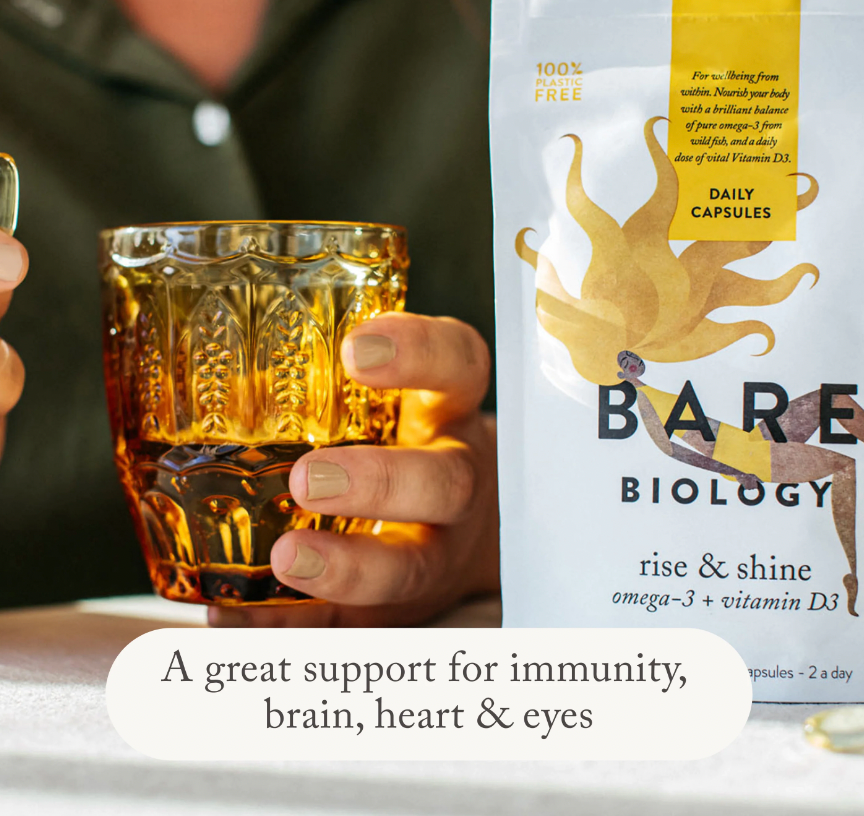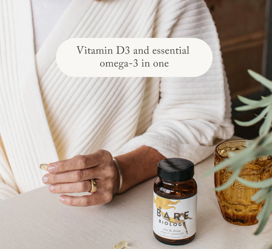 Rise & Shine is packed with Omega-3 and vitamin D3. Boost your overall health, brain, eyes and immune system with just 2 capsules a day.